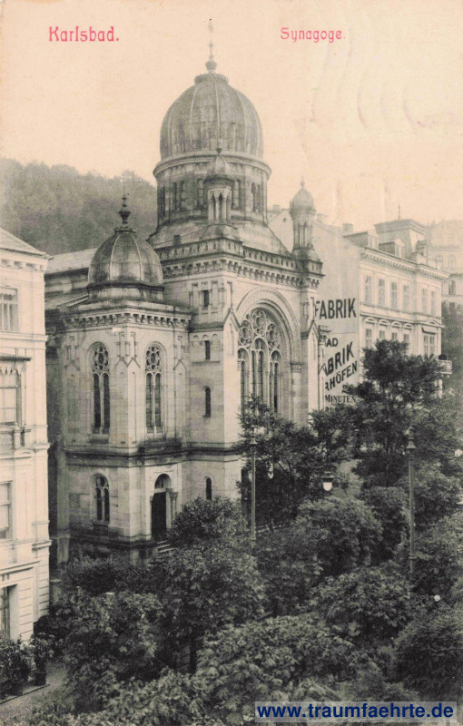 Beschriftung vorne: Karlsbad. Synagoge.