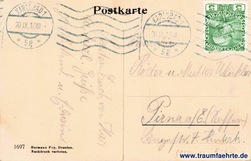 Stempel: 2x Karlsbad, * 5g *, 20.IX.12 XII; ~~~
