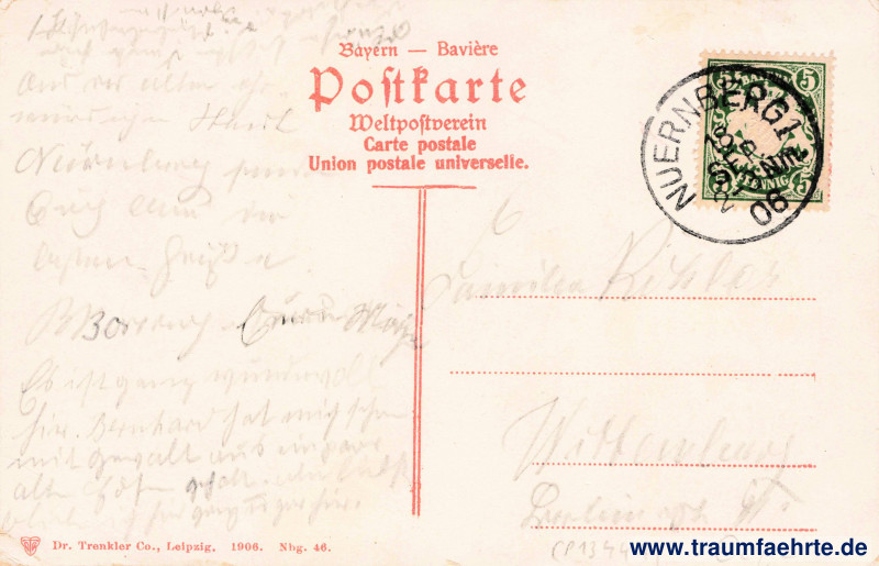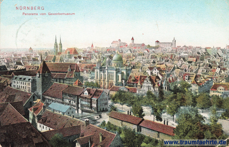 – Details – Jahr: 1906 Status: gelaufen 1906 Beschriftung vorne: Nürnberg, Panorama vom Gewerbemuseum Beschriftung hinten: Bayern – Baviére, Postkarte, Weltpostverein, Carte postale, Union postale universelle. DTCo. Dr. Trenckler Co., Leipzig. 1906. Nbg. 46. Stempel: Nuernberg 1, 18. Sep 06 2–3 Nm. Hinweis: