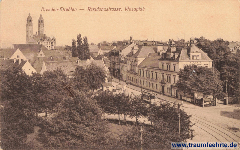 Beschriftung vorne: Dresden-Strehlen – Residenzstrasse, Wasaplatz