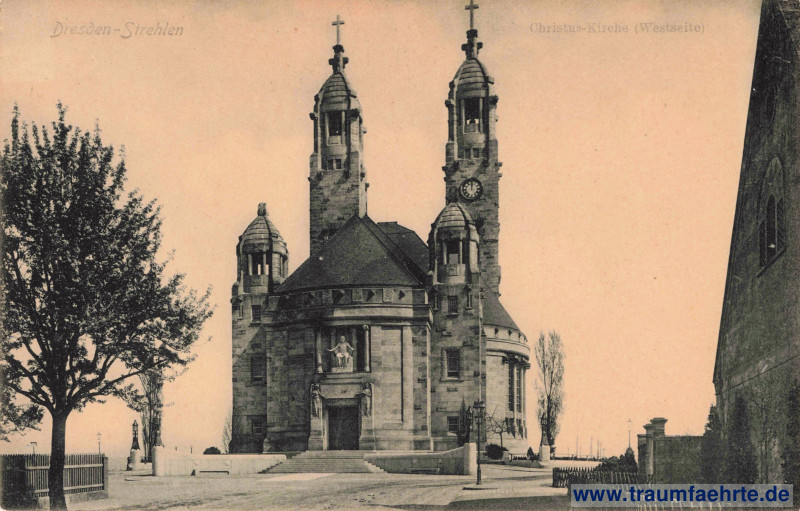 – Details – Jahr: ca. 1900 Status: ungelaufen Beschriftung vorne: Dresden-Strehlen, Christus-Kirche (Westseite) Beschriftung hinten: Engler's Postkarte. Carte postale, Post card, Für Mitteilungen, Für die Adresse, Orig.-A. Hugo Engler, Dresden 06-1897, Königl. Sächs. Hofphotogr. Stempel: keine Hinweis: