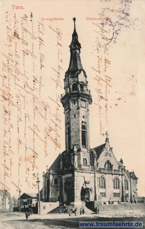 Beschriftung vorne: Turn. Evangelische Christuskirche.