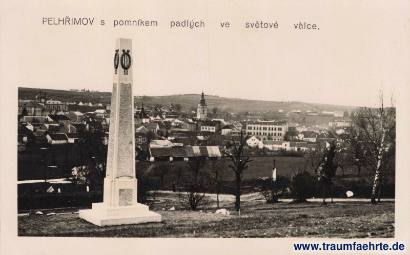 Beschriftung vorne: Pelhřimov s pomníkem padlých ve světové vàlce.