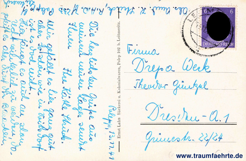 Beschriftung vorne: Polep i. Sudetengau, Bahnhofstraße, Arbeitsdienstlager