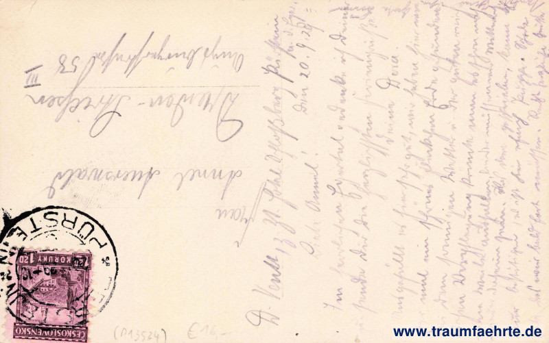 Stempel: Perštejn * Pürstein, 20.IX.29