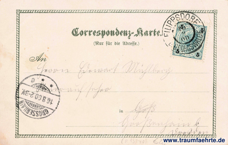 Stempel: Filippsdorf b. Georgswalde, 15 8 00; Grossenhain, * * c, 16.8.00.2–3V.