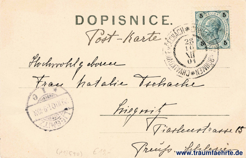 Stempel: Chvalkovice v Čechách * Chwalkowitz in Böhmen, 28 10 01 XII; Liegnitz, * 1 e, 29.10.01. 9–10N.