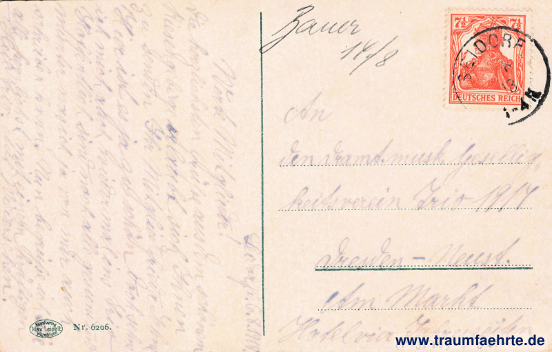 Beschriftung hinten: Kunstverlag Max Leipelt Warmbrunn, Nr. 6206.