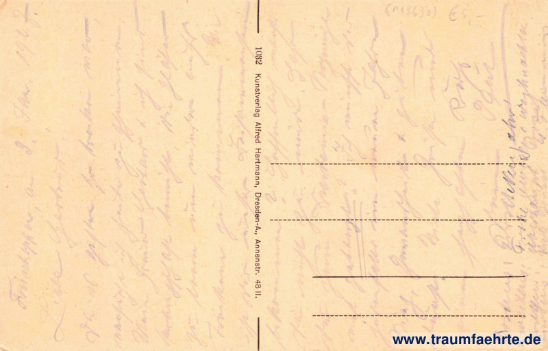 Inscription back: 1032 Kunstverlag Alfred Hartmann, Dresden-A., Annenstr. 48 II.