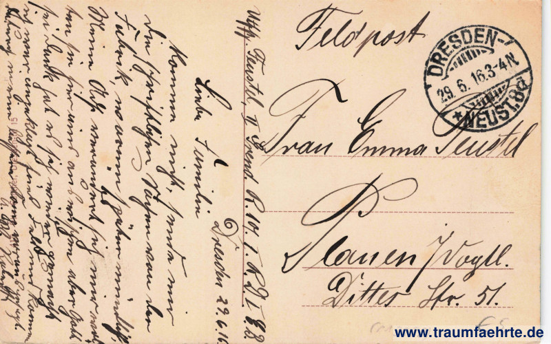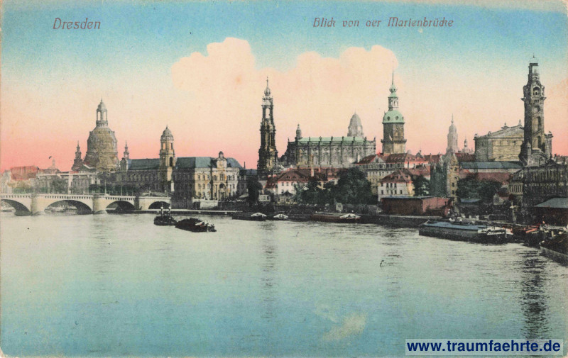 – Details – Year: ca. 1915 Postal state: postally used without stamp (military mail), 1916 Inscription front: Dresden, Blick von der Marienbrücke Inscription back: 41[5] Otto Günther, Dresden-N. 15. Postmark(s): Dresden-Neust. 8, * a, 29.6.16.3–4N Please note:
