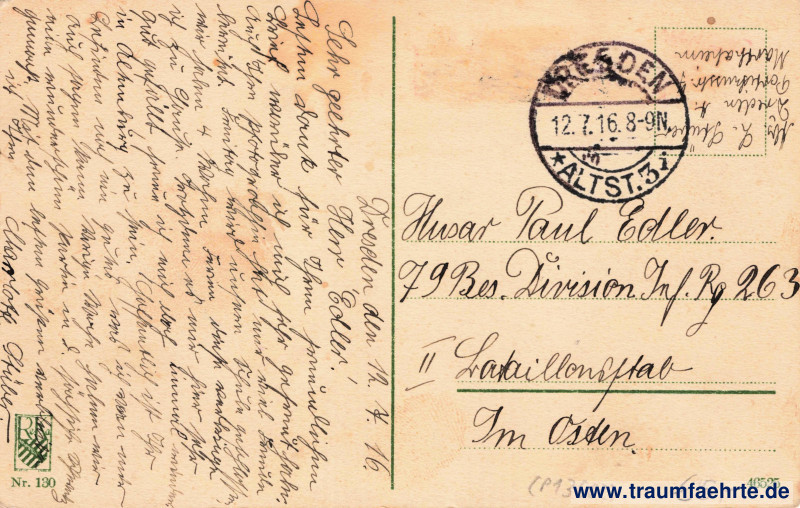 Postmark(s): Dresden-Altst. 3, * i, 12.7.16. 8–9N.