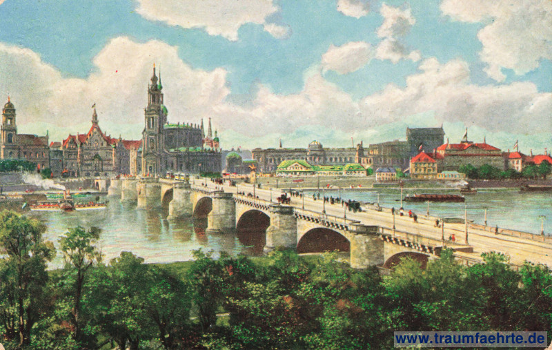 Postcard Augustusbrücke / Friedrich-August-Brücke bridge in Dresden [ Permalink ]