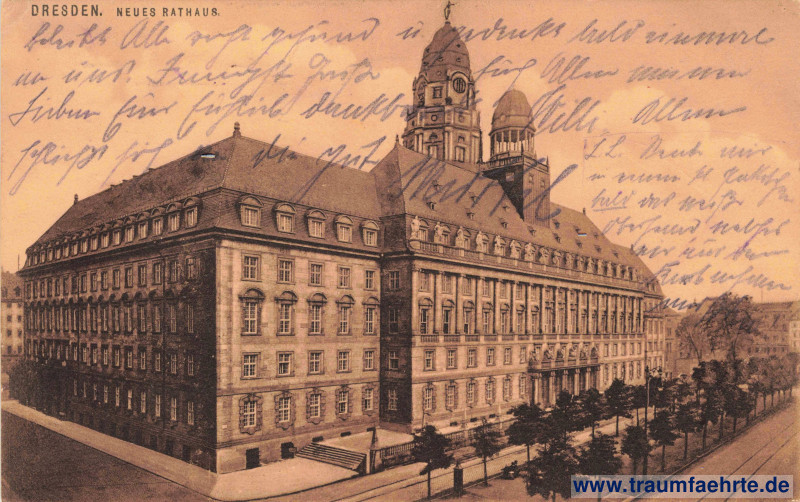 Postcard Neues Rathaus (new city hall) in Dresden [ Permalink ]