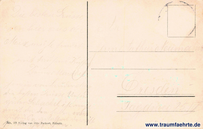 Inscription back: Nr .19 Verlag von Otto Furkert, Pillnitz.