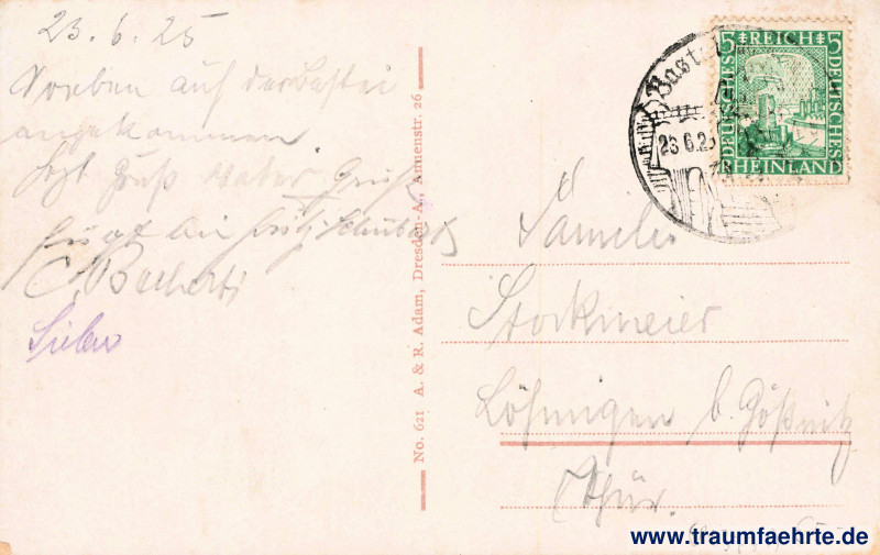 Inscription back: No. 621 A. & R. Adam, Dresden-A., Annenstr. 26
