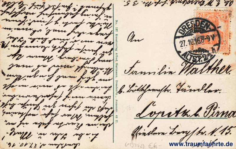 Beschriftung hinten: No. 137 Kunstverlag Alfred Hartmann, Dresden-A., Annenstr. 48 II.