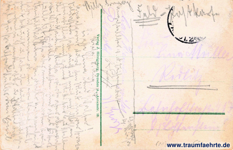 Beschriftung vorne: Dresden, Postplatz, Blick nach dem Schloss u. Sophienkirche