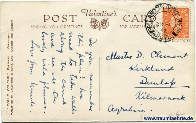 – Details – Jahr: ca. 1950 Status: gelaufen 1952 Beschriftung vorne: Crinan Bridge, Crinan Canal, Argyll, R224203 Beschriftung hinten: Valentine's Post Card, Sending Your Greetings ..., For Add[ress] ..., Cold Colour Postcard, Copyright, Published by Valtentine & Sons. Ltd., Dundee and London Stempel: Bellanoch, Lochgilphead, Arbyll, 29 SP 52 Hinweis: