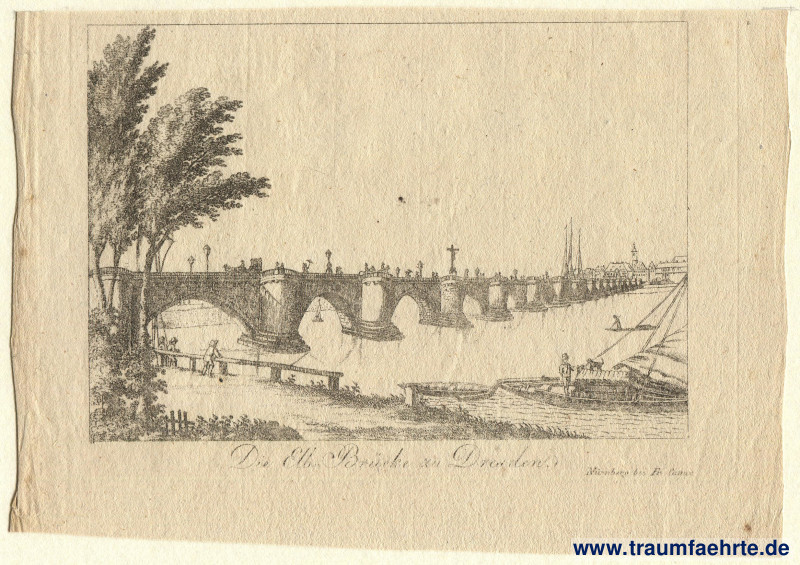 Beschriftung: Die Elb-Brücke zu Dresden. Nürnberg bei Fr. G[…]