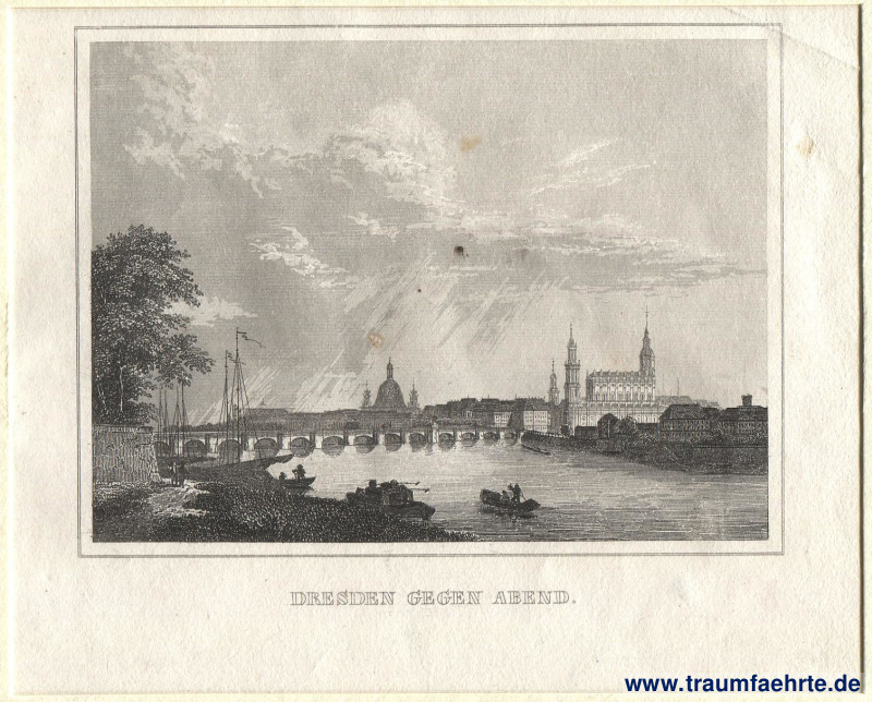 Schlagworte: Brücken, Elbe, Flüsse, Boote, Kirchen, Türme, Schlösser, Panorama, Stahlstiche