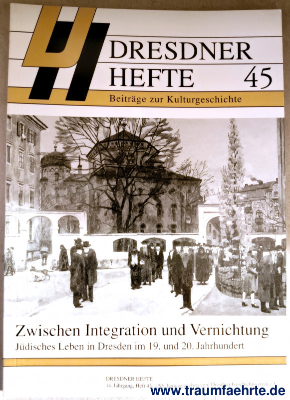 Alte Bücher etc. > SachsenDresdner Geschichtsverein e.V. (Hrsg.): Dresdner Hefte 45. Zwischen Integration und Vernichtung. Jüdisches Leben in Dresden im 19. und 20. Jahrhundert. [ Permalink ]>>> Artikel-Nr: 17375 <<< Dresden, Dresdner Geschichtsverein e.V. 1996, mit Abbildungen, 104 S., illustr. OKart., ISBN 3-910055-34-6 Zustand: schönes Exemplar Preis: 5,00 €
