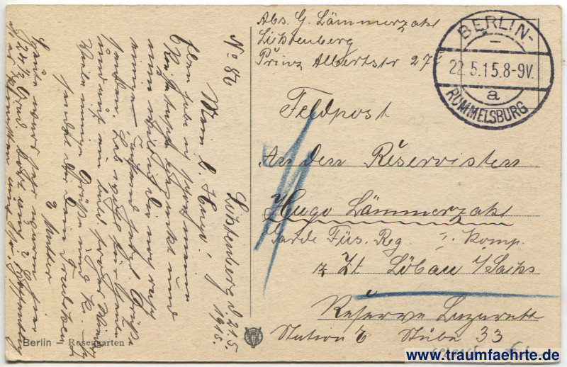 Stempel: Berlin-Rummelsburg, a, 22.5.15. 8–9V.