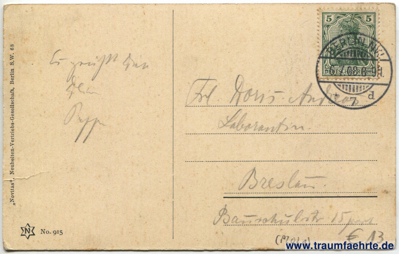 Beschriftung hinten: N, No. 915, „Novitas“, Neuheiten-Vertriebs-Gesellschaft, Berlin S.W. 68