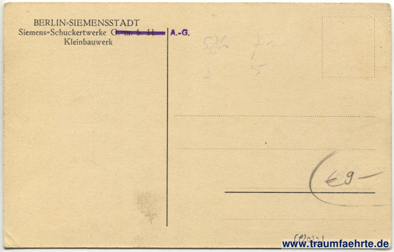 Beschriftung hinten: Berlin-Siemensstadt, Siemens-Schuckertwerke G.m.b.H., Kleinbauwerk