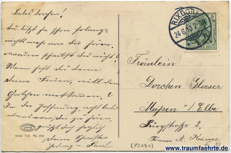 Beschriftung hinten: Knackstedt & Näther Lichtdruck Hamburg, Serie 716, No. 291