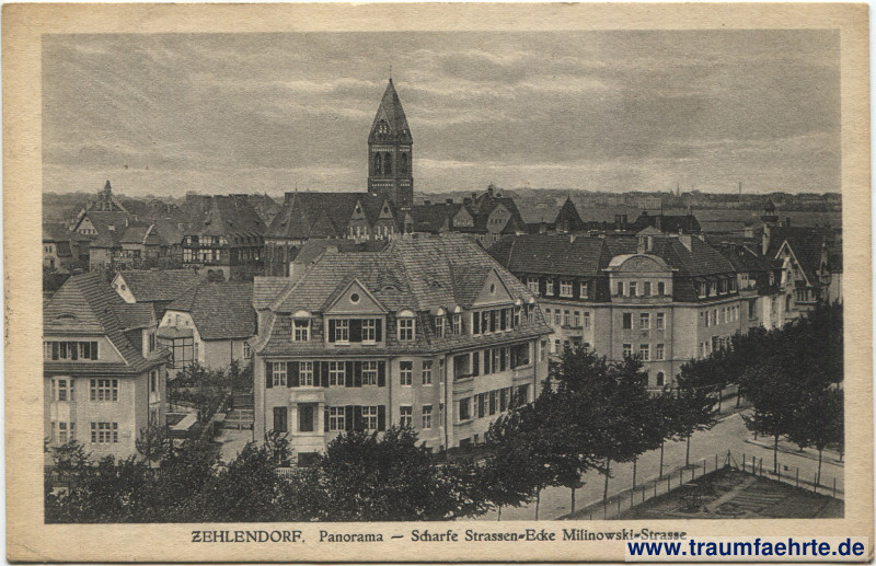 Beschriftung vorne: Zehlendorf. Panorama – Scharfe Strassen-Ecke Millinowski-Strasse