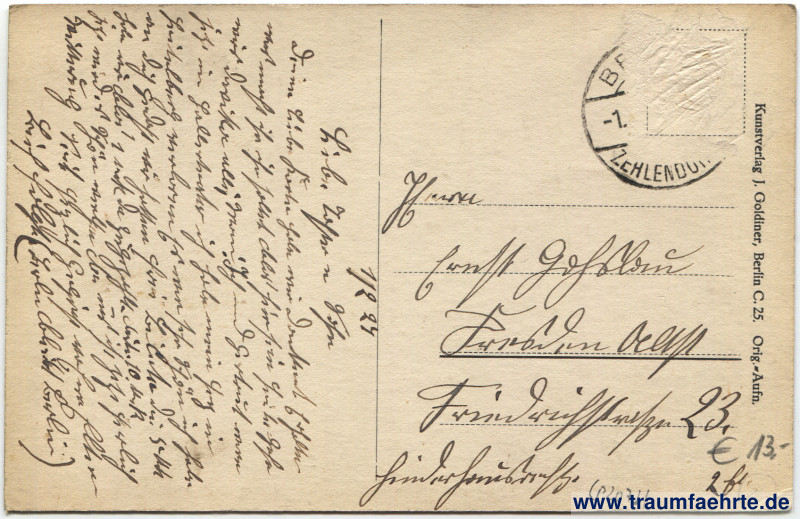 Beschriftung hinten: Kunstverlag J. Goldiner, Berlin C. 25. Orig.-Aufn.