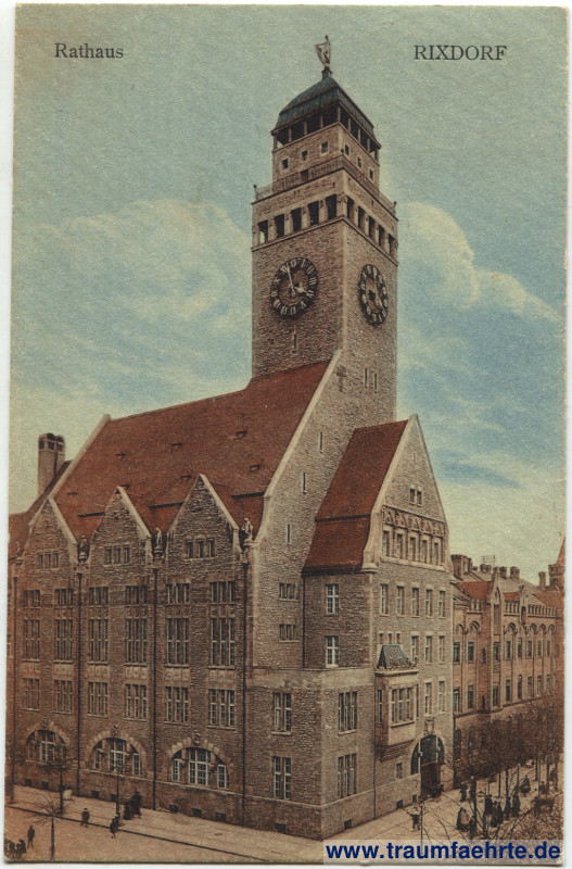 Postcard Rathaus Neukölln (Neukölln town hall) in Berlin city [ Permalink ]