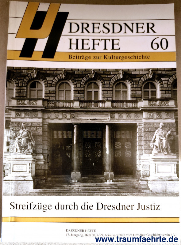 Alte Bücher etc. > Schlagworte mit G > GerichtswesenDresdner Geschichtsverein e.V. (Hrsg.): Dresdner Hefte 60. Streifzüge durch die Dresdner Justiz. [ Permalink ]>>> Artikel-Nr: 20964 <<< Dresden, Dresdner Geschichtsverein e.V. 1999, mit Abbildungen, 96 S., illustr. OKart., ISBN 3-910055-52-4 Zustand: schönes Exemplar Preis: 5,00 €