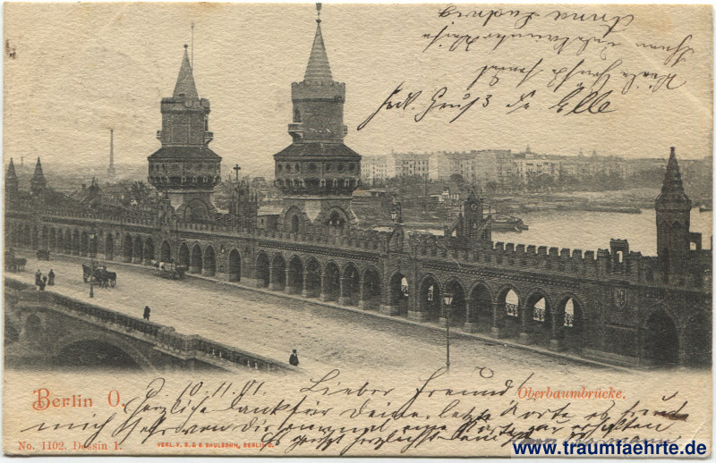 Beschriftung vorne: Berlin, O. Oberbaumbrücke. No. 1102. Dessin I. Verl. V. & S. Saulsohn, Berlin O.