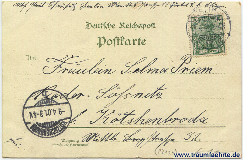 Postmark(s): Berlin […], * 17 [a], 8.4.01 3–4N; Kötschenbroda, * b *, -9.4.01. 3–4 V.