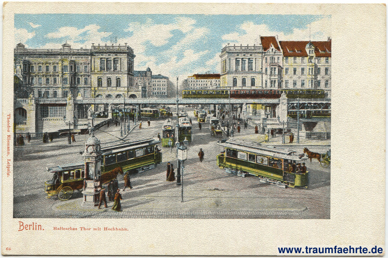 Beschriftung vorne: Berlin. Hallesches Thor mit Hochbahn. Theodor Eismann, Leipzig. 66