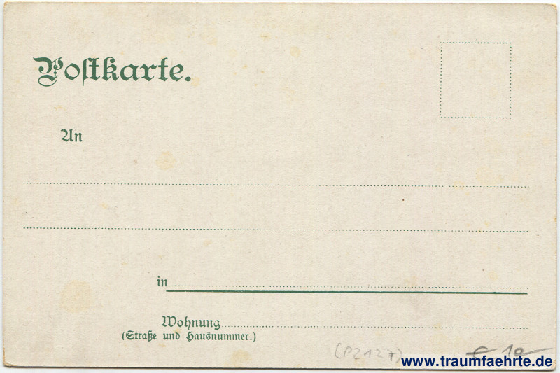 Beschriftung hinten: Postkarte. An … in … Wohnung (Straße und Hausnummer) …