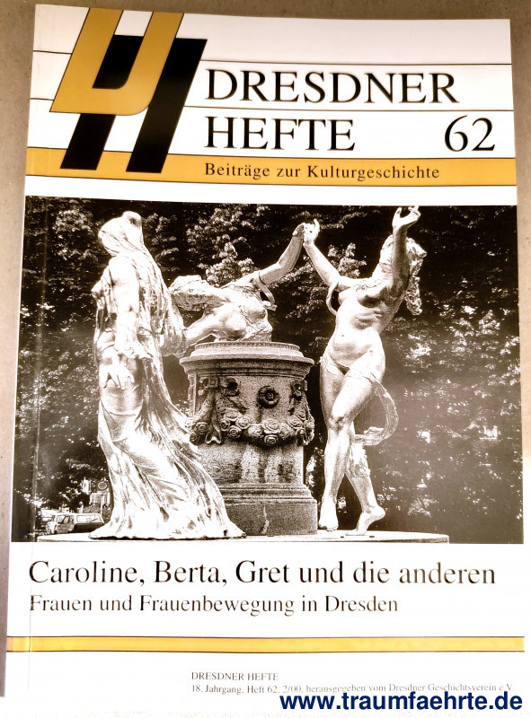 Alte Bücher etc. > SachsenDresdner Geschichtsverein e.V. (Hrsg.): Dresdner Hefte 62. Caroline, Berta, Gret und die anderen. Frauen und Frauenbewegung in Dresden. [ Permalink ]>>> Artikel-Nr: 21741 <<< Dresden, Dresdner Geschichtsverein e.V. 2000, mit Abbildungen, 104 S., illustr. OKart., ISBN 3-910055-54-0 Zustand: schönes Exemplar Preis: 5,00 €