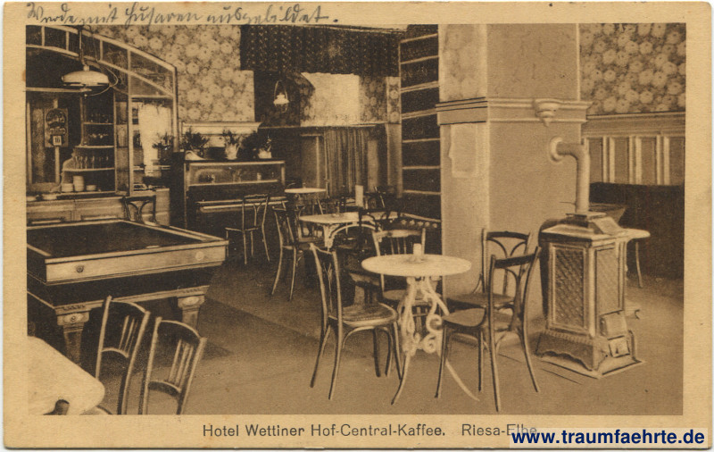 Inscription front: Hotel Wettiner Hof–Central Kaffee. Riesa–Elbe.