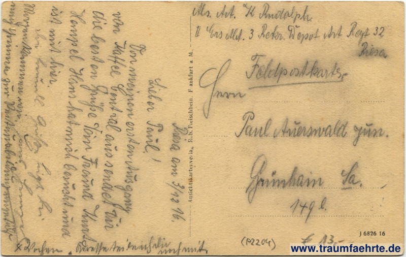Inscription back: Ansichtskartenverlag, Rob. Fischbein, Frankfurt a. M. J 6826 16