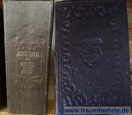 Alte Bücher etc. > Geschichte > Genealogie & HeraldikAlmanach de Gotha. Annuaire Diplomatique Et Statistique Pour L'Annee 1867. [ Permalink ]>>> Artikel-Nr: 23892 <<< Gotha, Perthes 1866, mit 6 Stahlstich-Porträts, 1116 S., OLn., 7,3 x 10.9 cm Zustand: Exlibris ( Bibliothegue du Marquis de Granges de Surgeres) auf vorderem Innendeckel, Einbandfarbe etwas verblichen, schönes Exemplar Preis: 65,00 €