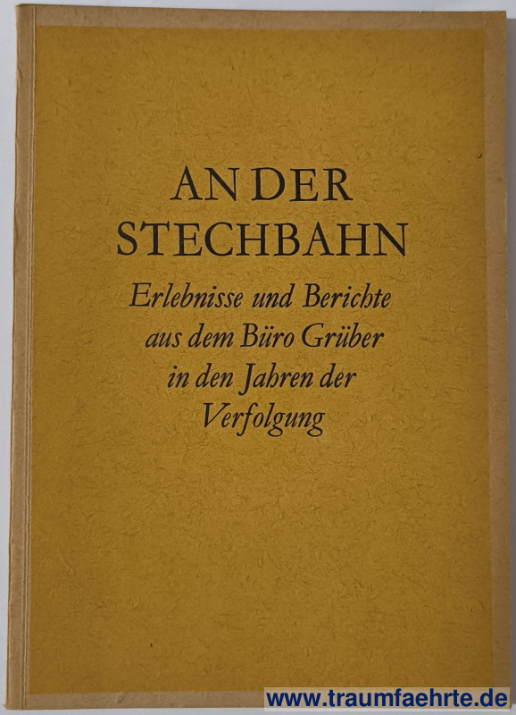 Alte Bücher etc. > Geschichte > ZeitgeschichteAn der Stechbahn. Erlebnisse und Berichte aus dem Büro Grüber in den Jahren der Verfolgung. [ Permalink ]>>> Artikel-Nr: 23900 <<< Berlin, Evangelische Verlagsanstalt 1951, mit 1 Foto, 53 S., OKart. Zustand: ordentliches Exemplar Preis: 8,00 €