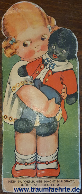 Mein Puppenjunge macht mir Spass... [ Permalink ]>>> article no.: 24636 <<< Anonym ca. 1930 (Verlagsnummer: 744), Umrißbilderbuch, 6 illustr. Blatt mit Versen, farb. illustr. OBro., 4° Often used abbreviations and their translations Condition: der Druckmechanismus (für den Ton der Puppe) im hinteren Buchdeckel fehlt – an dieser Stelle ein Loch im Papier, Einband berieben Price: 48.00 €