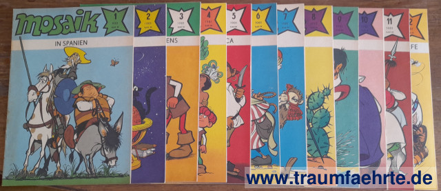 Alte Bücher etc. > Kinderbücher > Comics & HumorMosaik-Bilderzeitschrift (Abrafaxe) 1981, Hefte 1–12 (kompletter Jahrgang). [ Permalink ]>>> Artikel-Nr: 26112 <<< Berlin, Verlag Junge Welt 1981, mit farb. Bildern, je Heft 19 S., farb. illustr. OBro. Zustand: ordentliche Hefte Preis: 11,00 €