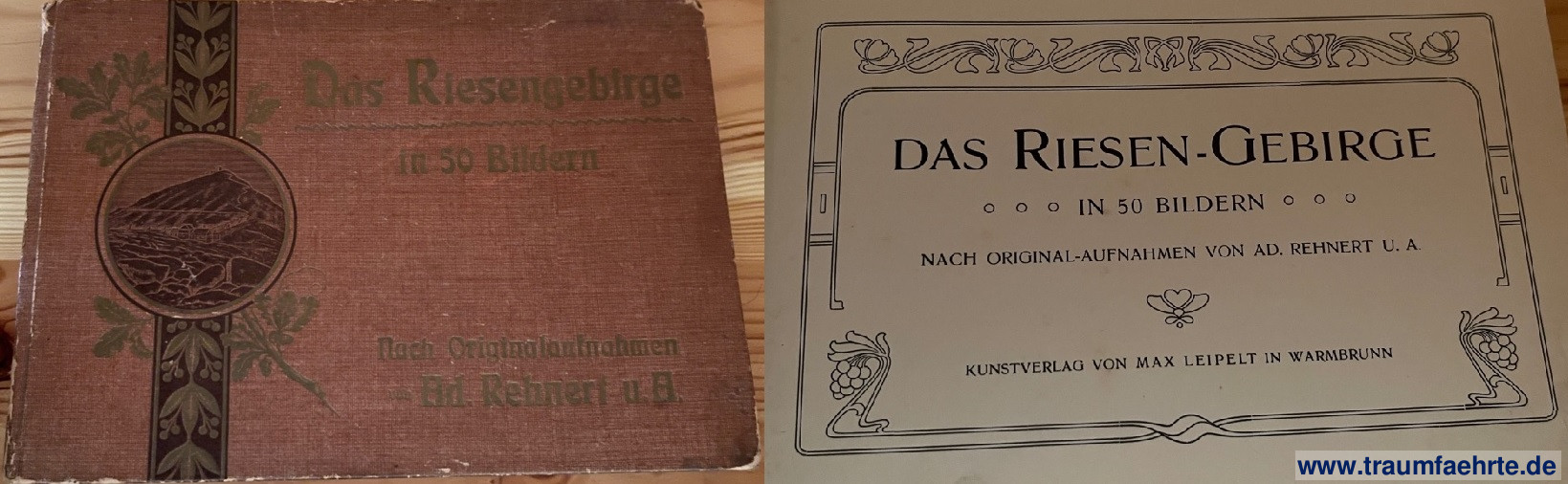 Alte Bücher etc. > Orts- & Landeskunde > EuropaDas Riesengebirge in 50 Bildern. [ Permalink ]>>> Artikel-Nr: 26121 <<< Warmbrunn, Leipelt ca. 1905, 50 Fotos von A. Rehnert, 53 Blatt, goldgeprägtes OLn., Quer-8° Zustand: Rücken mit Pflaster stabilisiert Preis: 28,00 €