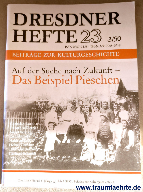 Alte Bücher etc. > SachsenRat des Bezirkes Dresden (Hrsg.): Dresdner Hefte 23. Auf der Suche nach Zukunft – Das Beispiel Pieschen. [ Permalink ]>>> Artikel-Nr: 26671 <<< Dresden, Rat des Bezirkes 1990, mit Abbildungen, 76 S., illustr. OBro. Zustand: ordentliches Exemplar Preis: 6,00 €