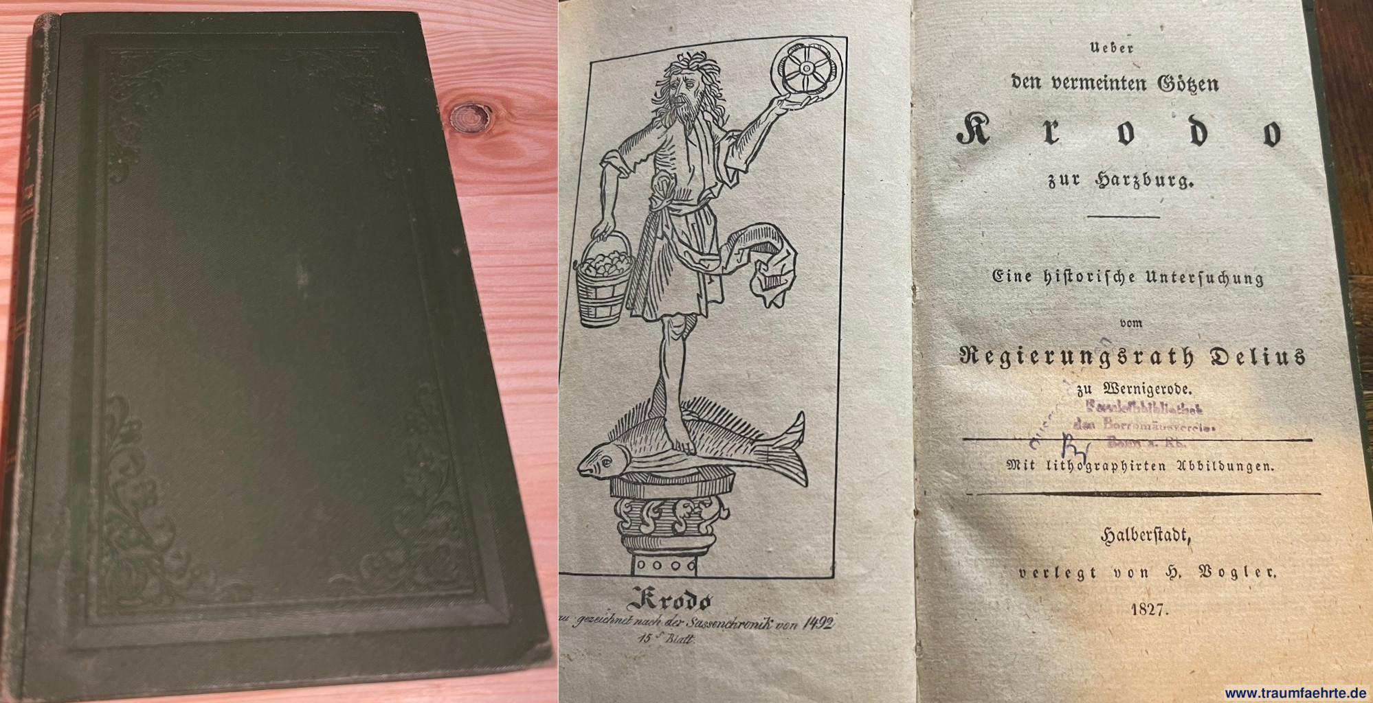 Alte Bücher etc. > Orts- & Landeskunde > DeutschlandDelius: Über den vermeinten Götzen Krodo zur Harzburg. Eine historische Untersuchung. [ Permalink ]>>> Artikel-Nr: 29631 <<< Halberstadt, Vogler 1827, mit 1 Titelbild, 2 ausklappbaren Tafeln, 168 S., goldgeprägtes OLn., marmorierte Vorsätze Zustand: Exlibris auf Innendeckel, alter Bibliotheksstempel auf Titelblatt, Rückenkanten etwas berieben Preis: 280,00 €