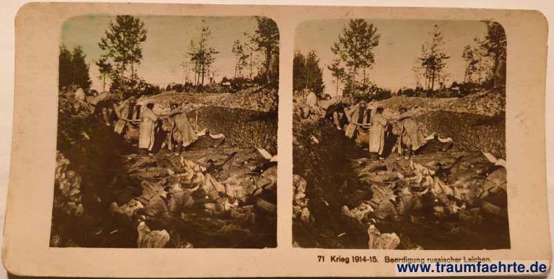 Schlagworte: Stereophotographie, Neue Photographische Gesellschaft, Erster Weltkrieg, Fotografie, Propaganda, Soldaten, Leichen, Schützengräben, Ostfront, Militaria