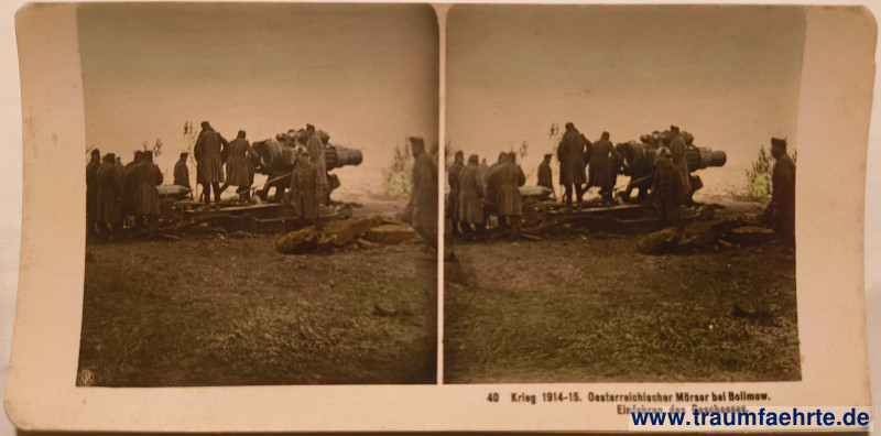 Beschriftung vorne: NPG, 40, Krieg 1914–15. Oesterreichischer Mörser bei Bolimow. Einfahren des Geschosses.