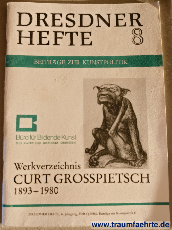 Alte Bücher etc. > SachsenRat des Bezirkes Dresden (Hrsg.): Dresdner Hefte 8. Werkverzeichnis Curt Grosspietsch 1893–1980. [ Permalink ]>>> Artikel-Nr: 33252 <<< Dresden, Rat des Bezirkes 1988, mit Abbildungen, 72 S., illustr. OBro. Zustand: berieben, hinterer Buchdeckel etwas knickspurig Preis: 28,00 €
